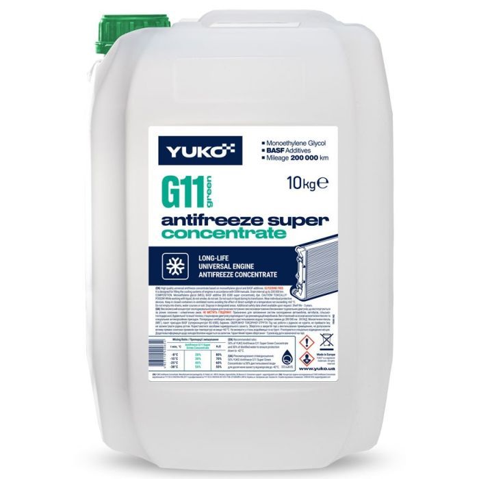 Класс - G11, Тип - концентрат, Температура замерзания - -80 °C, Цвет - зелёный, Объем (вес) - 20 л, Основа - этиленгликоль, Срок эксплуатации - до 2 лет, бутылка пластиковая