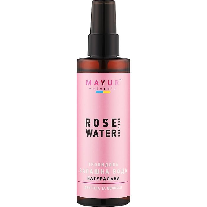 Душистая вода Mayur Розовая — 100 % натуральная душистая вода, насыщенная эфирными маслами из цветов индийской Розы. Не содержит этилового спирта, консервантов и ароматизаторов. Имеет сильный цветочно-розовый, слегка сладковатый, несколько пряный, терпкий, блюзовый, медовый, нежный аромат. Успокаивает, расслабляет, снимает нервное напряжение, рассеивает тревогу, ослабляет чувства страха, гнева, злости.