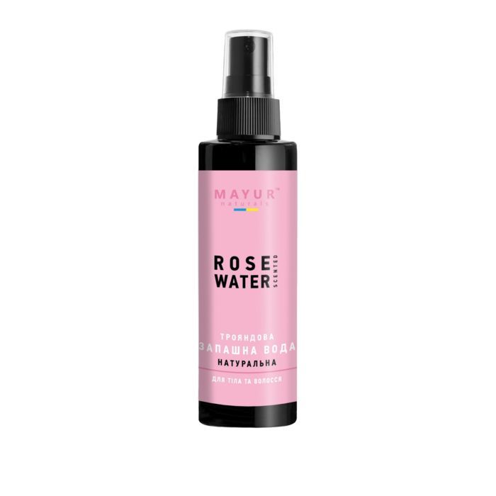 Душистая вода Mayur Розовая — 100 % натуральная душистая вода, насыщенная эфирными маслами из цветов индийской Розы. Не содержит этилового спирта, консервантов и ароматизаторов. Имеет сильный цветочно-розовый, слегка сладковатый, несколько пряный, терпкий, блюзовый, медовый, нежный аромат. Успокаивает, расслабляет, снимает нервное напряжение, рассеивает тревогу, ослабляет чувства страха, гнева, злости.