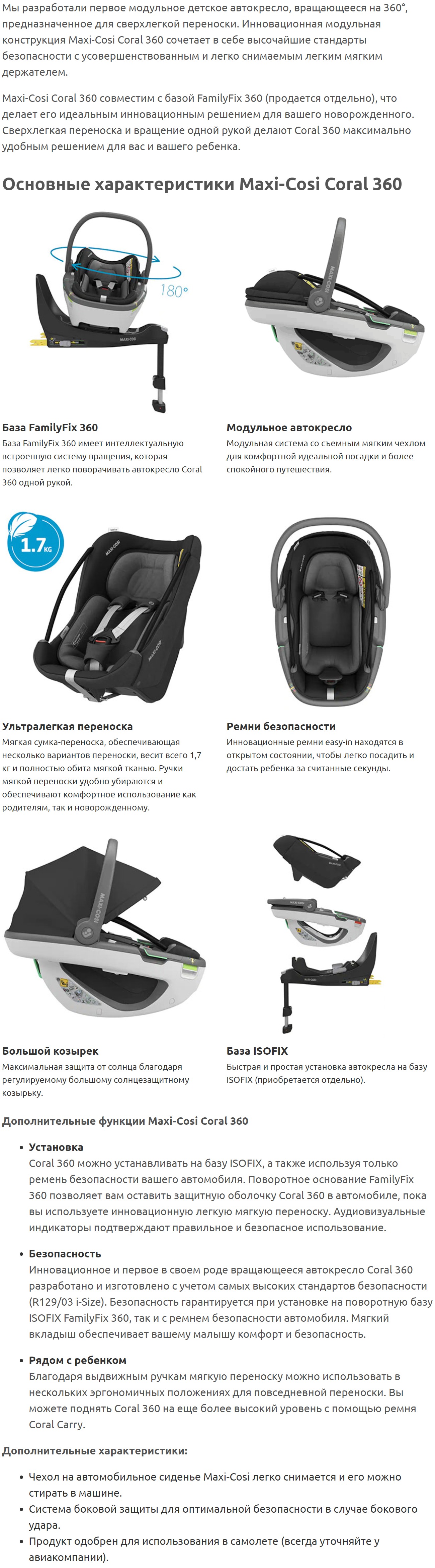 Описание Автокресло Maxi-Cosi Coral 360 Essential Graphite (8559750111)