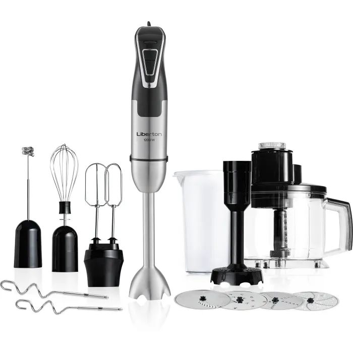 Комплектация модели поражает своей универсальностью. Вы получите мерный стакан объемом 0.7 л, который идеально подходит для смешивания небольших порций или измерения ингредиентов. Измельчитель на 500 мл станет полезным для быстрого и тщательного измельчения овощей, фруктов или орехов. Дополнительные аксессуары включают насадку для пюре, нож для измельчения, насадку-венчик и насадку-блендер, которые расширяют возможности приготовления кулинарных шедевров.