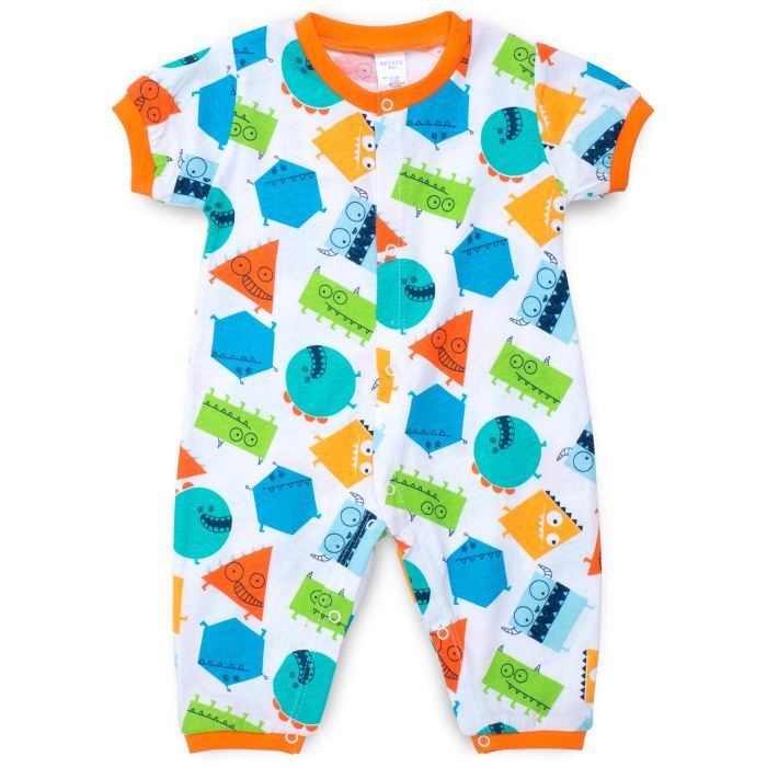 Уютная модель яркой расцветки с короткими рукавами и средней длины ножками. Легко и быстро снимается и надевается благодаря застёжке на кнопочки по всей длине. Застёжка начинается от центра горловины и расходится к ножкам, что очень удобно и маме, и малышу для быстрой смены подгузника.