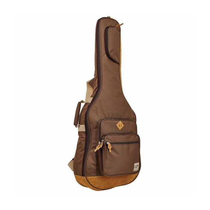 IBANEZ IAB541 - дизайнерский чехол утепленный для акустической гитары серии PowerPad, размер - 4/4, толщина: 25 мм - основная, 15 мм - боковая, цвет - коричневый со вставками из коричневой замши, заплечные ремни с регулировкой длины, ручка для передвижки.