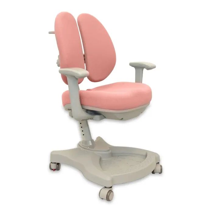 Особенностью этого кресла является ортопедическая форма спинки, изготовленная из воздухопроницаемого материала. Её уникальный двойной дизайн помогает формировать правильную осанку и предотвращает защемление мышц спины, обеспечивая комфорт даже летом. Устойчивая и надёжная основа без крестовины изготовлена из прочного металла, что придаёт креслу стабильность и долговечность. Ткань обивки на ощупь приятна и устойчива к износу.