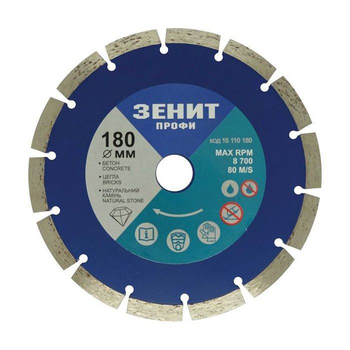 Описание Диск пильный Зеніт "ПРОФІ" алмазный сегментный 115x10 мм (16110115)
