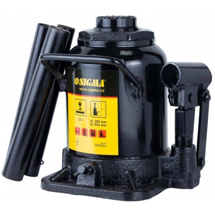 Изготовлен домкрат в бутылочном (вертикальном) форм-факторе, что делает его более устойчивым и компактным. Имея вполне компактные размеры, устройство без проблем справится с подъемом автомобиля с полной массой до 20 т, легковой автотранспорт такой домкрат поднимет как пушинку.