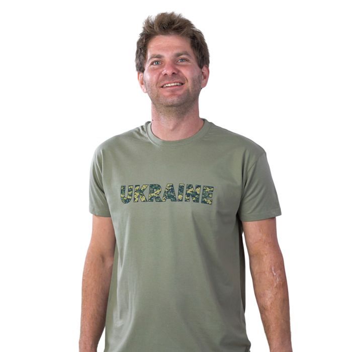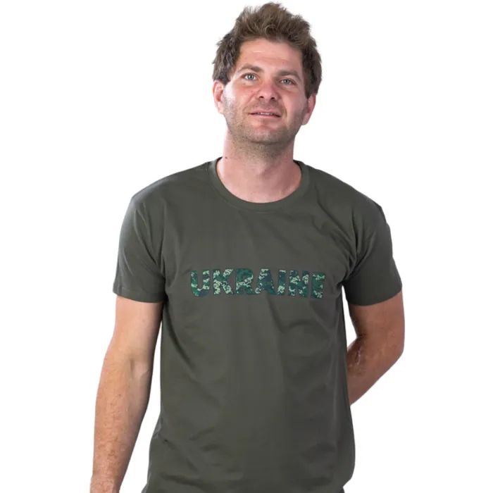 Мужская футболка со стильным принтом Ukraine, воротник с круглым вырезом, цвет хаки, от французского бренда Sols.