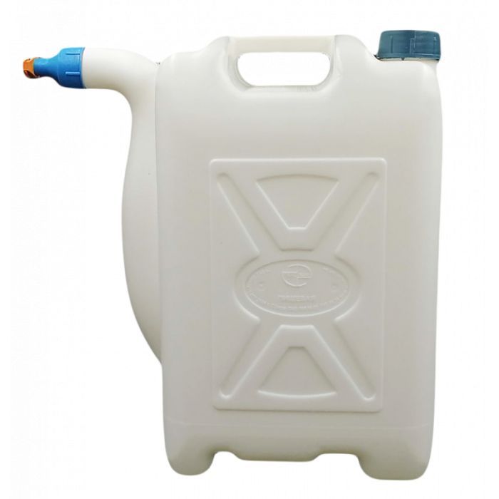 Объем - 20 л, Материал - пластик, Жидкость - бензин, дизель, масло, антифриз, тормозная, Тип крышки - нарезная пробка, Особенности - с лейкой, вертикальные, синий
