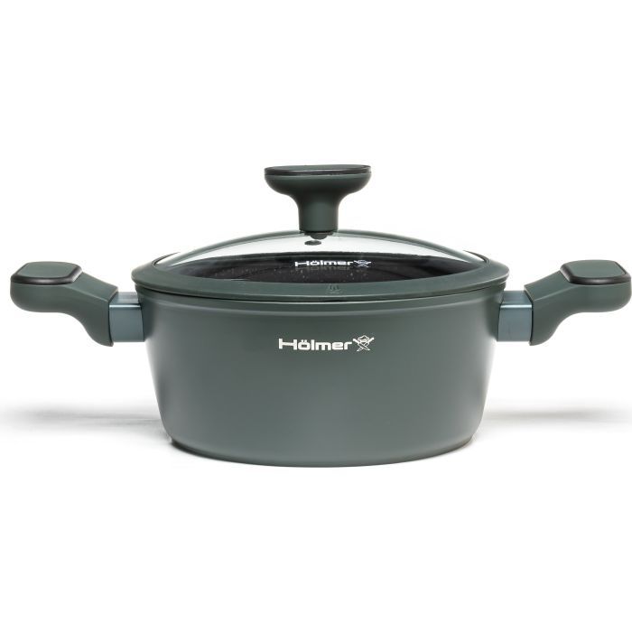 Особое внимание уделено деталям: ручки изготовлены из термостойкого бакелита с мягким на ощупь покрытием Soft-touch, которое не нагревается и обеспечивает надежное захватывание, а крышка из термостойкого стекла имеет отверстие для выхода пара, что добавляет удобства в процессе приготовления.