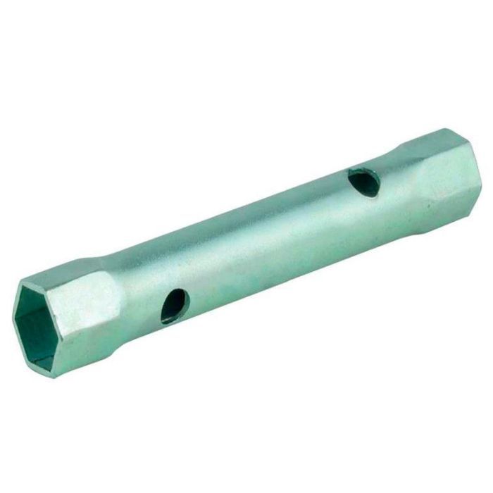 Особенность конструкции заключается в трубчатой форме с шестигранниками на концах, что обеспечивает надежный захват и позволяет работать с глубоко расположенными деталями. Отверстия для воротка добавляют инструменту универсальности, упрощая применение в труднодоступных местах.