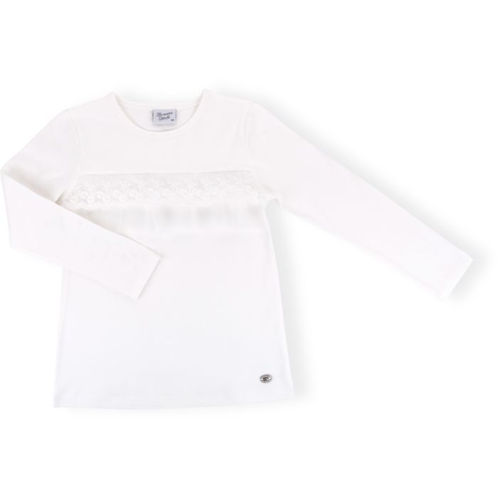 Нарядный лонгслив с кружевной оборкой для девочки.
