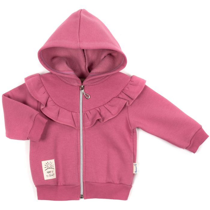 Тип - з капюшоном, кофта, на молнии, Пол ребенка - для девочки, Возраст - 9 - 12 мес, 74 см, Сезон - осень весна зима, Состав материала - 70% хлопок / 30% полиэстер, Цвет - тёмно-розовый, Количество в упаковке - 1 шт