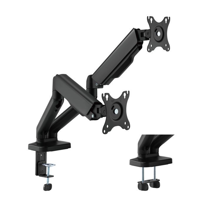 для монитора, Тип - поворотно-наклонный, количество степеней свободы - 4, минимальная поддерживаемая диагональ - 17", максимальная поддерживаемая диагональ - 32", VESA - 75 x 75, 100 x 100, Максимальная нагрузка - 9 кг, Наклон - -45°~+90°, Поворот - +90°~-90°, Вращение - 360°, с регулировкой по высоте, со скрытой укладкой проводов, система прокладки кабелей, с регулировкой глубины, настольное крепление для монитора, голубой
