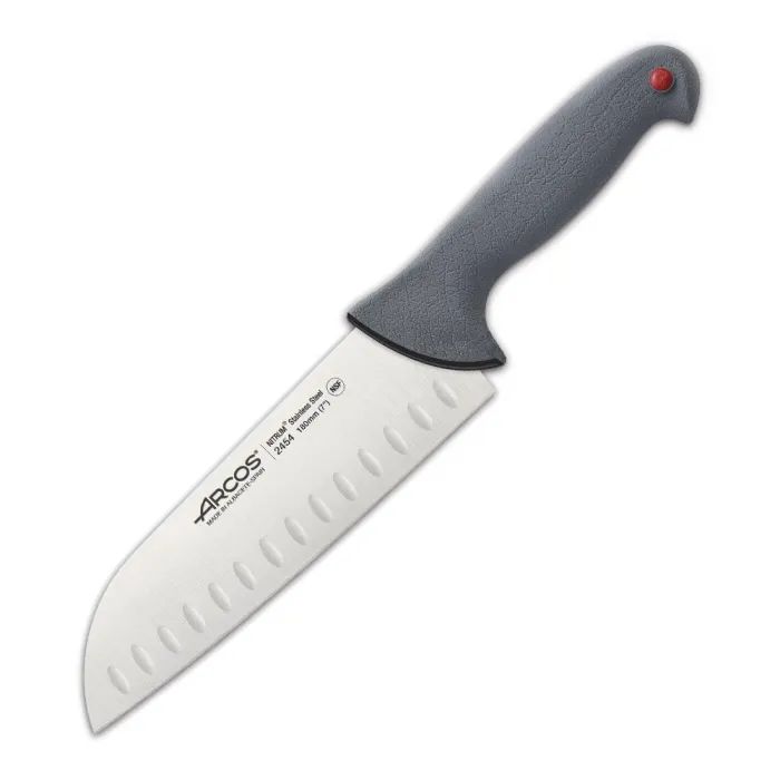 Ножи Arcos серии Сolour-prof изготовлены из прокатной стали Nitrum методом штамповки. Состав стали приближен к кованым ножам. Прокатные ножи – тонкие, легкие, неприхотливые, стойкие к влаге. Такие ножи легко править и точить.