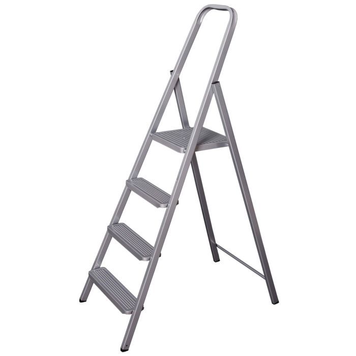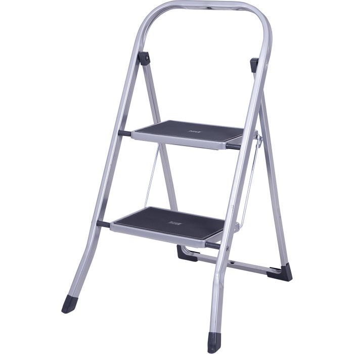 Лестница изготовлена из высококачественного металла, а её защитное эпоксидное покрытие добавляет износостойкости, обеспечивая длительный срок службы даже при частом использовании. Высота площадки составляет 47 см, что является оптимальным для многих домашних работ, от замены лампочки до достижения труднодоступных полок.