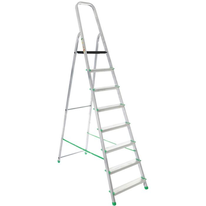 Благодаря алюминиевой платформе, эта стремянка легкая и прочная одновременно. Алюминиевые, профилированные ступени, соединённые с боковинами методом фланжирования, делают её чрезвычайно устойчивой. Такая конструкция обеспечивает отличное сцепление между ступенями и обеспечивает максимальную надежность при использовании. На ножках стремянки расположены двухкомпонентные наконечники, прочно фиксирующие стремянку на любой поверхности, снижая риск скольжения.