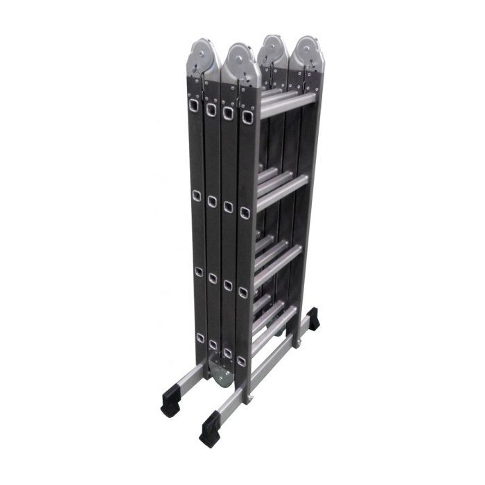 Одним из главных преимуществ данной модели является ее конструкция трансформера, которая позволяет использовать лестницу в четырех различных конфигурациях. Это открывает широкий спектр возможностей: от обычного лестничного использования до удлиненных вариантов для труднодоступных мест, на все случаи жизни. Лестница имеет в общей сложности 16 ступенек, распределенных по четырем секциям, что позволяет адаптировать ее под конкретные нужды.