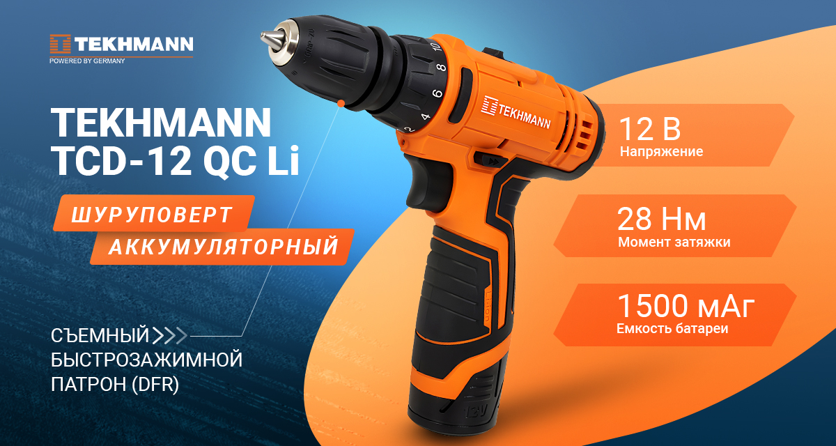Доставка Шуруповерт Tekhmann TCD-12 QC Li с 1 АКБ (853461)
