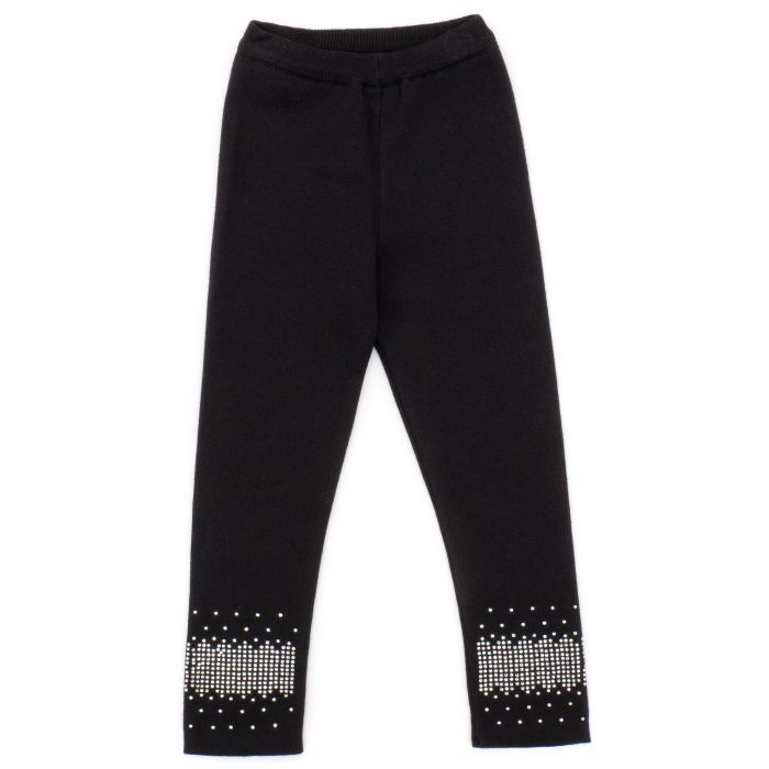 Красивые зимние вязаные лосины со стразами для девочки.