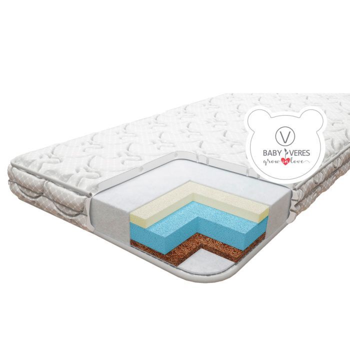 Матрас Верес "Memory+» - детский матрас на основе кокосовой койры, пены Elastic Foam и пены мемори. Матрас предназначен для правильного формирование костно-мышечной мускулатуры у ребенка.