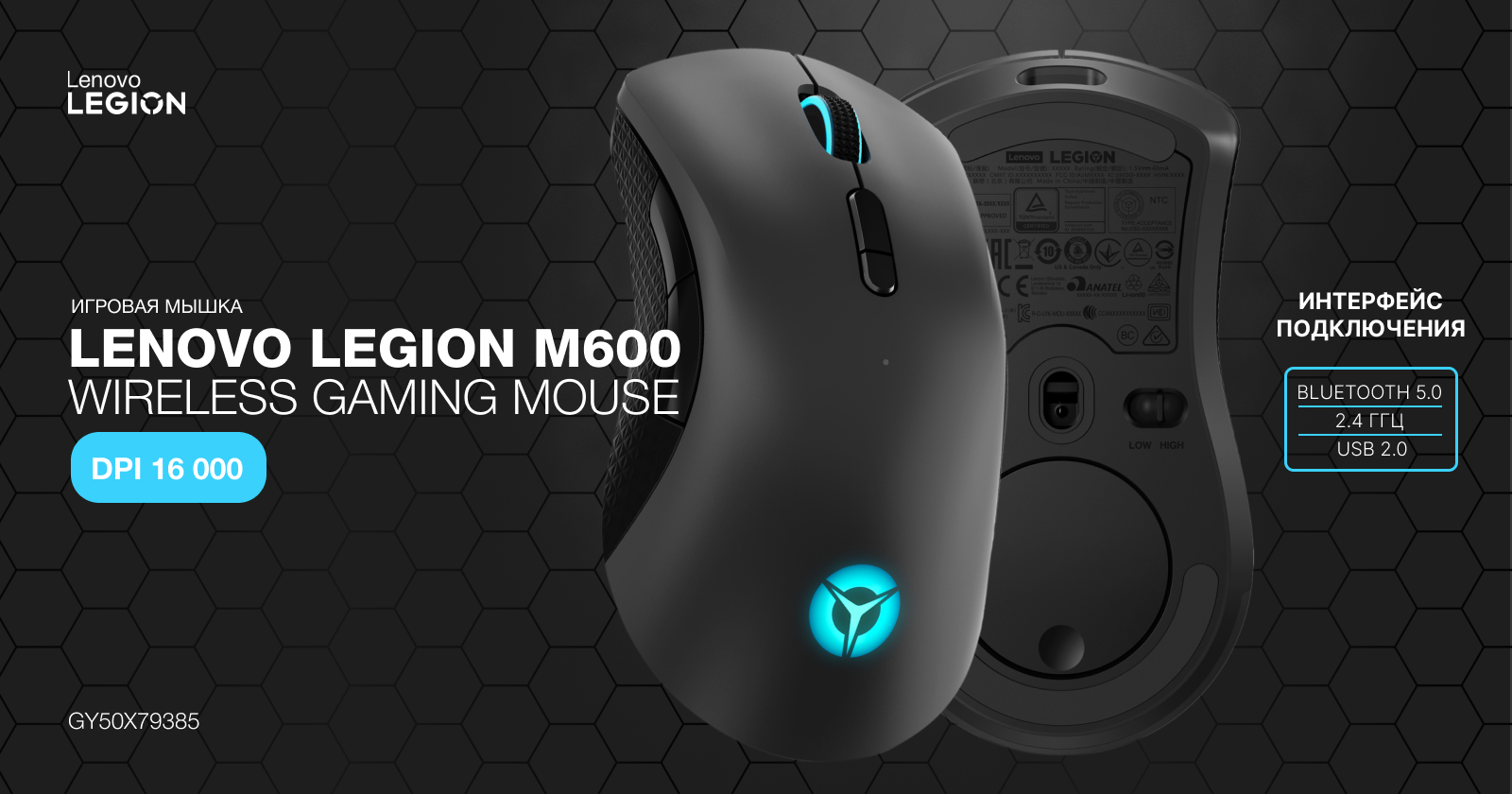 Описание Мышка Lenovo Legion M600 RGB Wireless Gaming Mouse Black (GY50X79385)