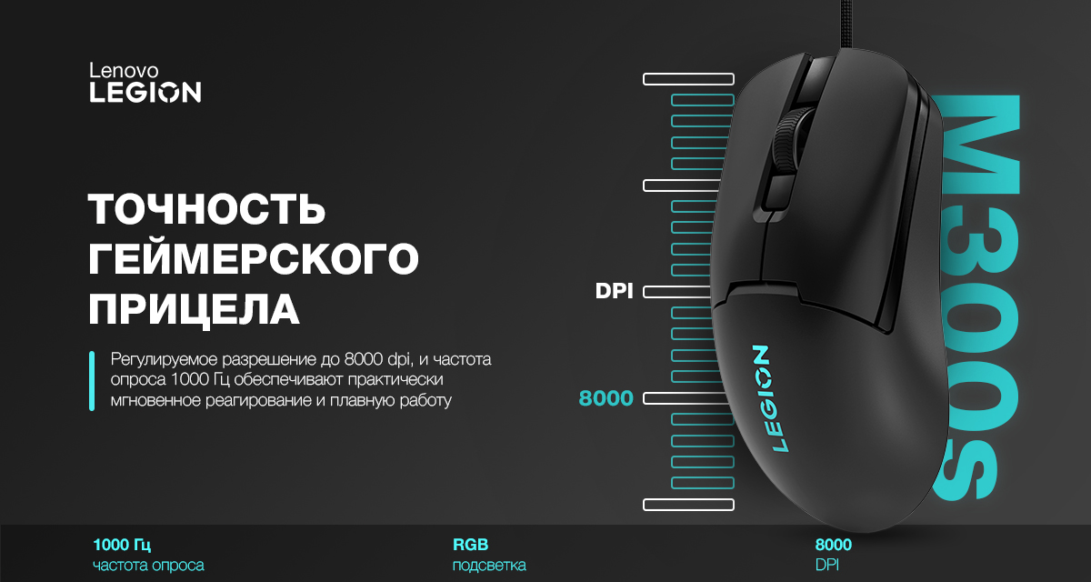 Описание Мышка Lenovo Legion M300s RGB USB Black (GY51H47350)