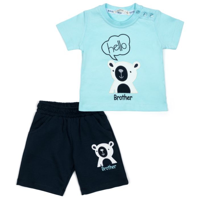 Летний трикотажный комплект «HELLO BROTHER»: футболка и шорты.