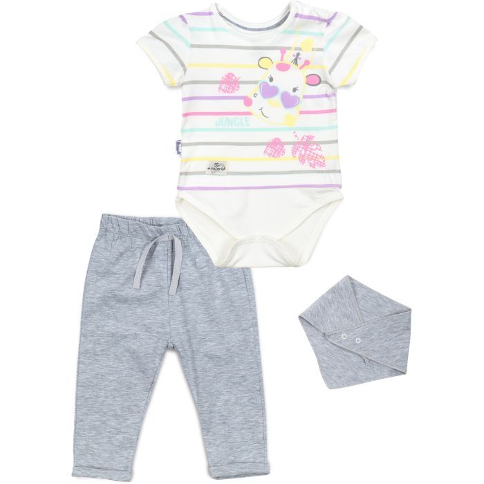 Трикотажный комплект 3в1 с жирафом для девочки.