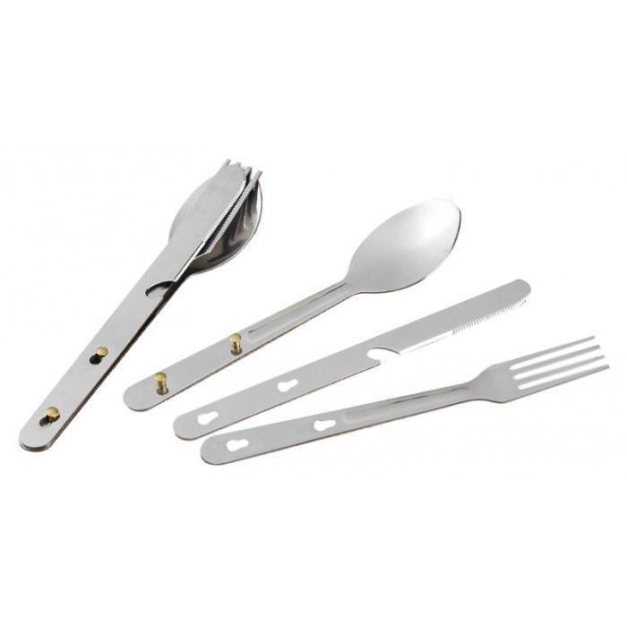 Все приборы удобно и надежно крепятся друг к друг.Такой туристический набор столовых предметов будет просто незаменимым во время похода на природу.