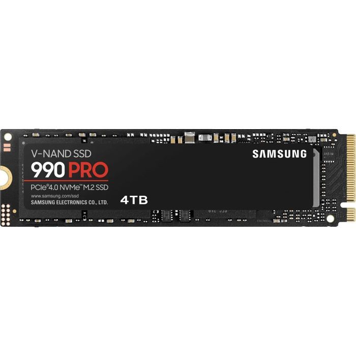 Серия - 990 Pro, 4 TB, V-NAND 3D TLC, M.2, PCI Express 4.0 x4, Скорость чтения - 7450 Mb/s, Скорость записи - 6900 Mb/s, 80.15 x 25 x 8.88 мм, 28 г, черный