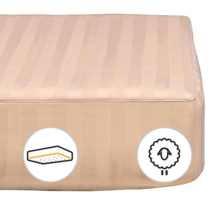 Наматрасник на резинке из высококачественной итальянской ткани. Ткань имеет название Сатин-страйп Италия, состоит исключительно из 100% высококачественного хлопкового волокна. Сатиновая ткань чехла имеет сложное, жаккардовое переплетение, что придает наматраснику не только высоко эстетическую изысканность но и увеличивает прочность ткани в целом. С другой стороны наматрасник выполнен из итальянского микросатина, в состав которого входит хлопок и полиефирное волокно, которое придает наматраснику легкость, долговечность.