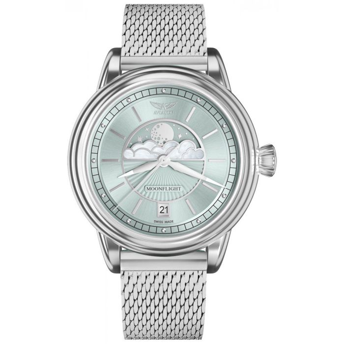 В коллекции часов AVIATOR MoonFlight классические элементы стиля ар-деко эффектно сочетаются с фазами Луны. Вошедшие в нее модели посвящены лучшему самолету тех времен. С ними вы будете окружены звездами в изысканной атмосфере от-кутюр.