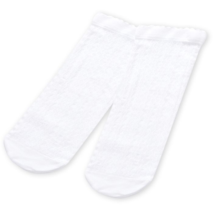 Белые фабричные капроновые носочки с интересным узором в мелкие ромбики для девочки, из мягкого микроволокна (плотностью 40 micro) с удобной резинкой и укрепленным носком.