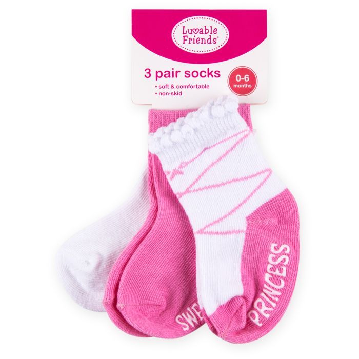 Описание Носки детские Luvable Friends 3 пары нескользящие, для девочек (02316.0-6 F)
