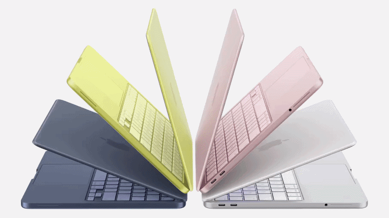 MacBook Neo представлен в четырех стильных цветах: Silver, Blush, Citrus и Indigo. Каждый вариант подчеркивает современный характер устройства и делает ноутбук визуально привлекательным. Цветовая палитра позволяет выбрать модель, которая лучше всего подходит под личный стиль пользователя.