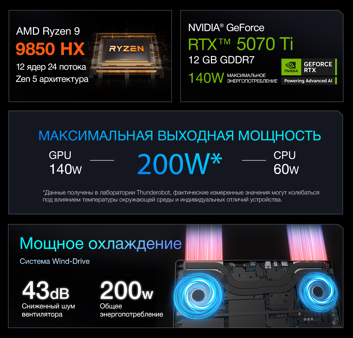 | Процессор | AMD Ryzen 9 9850HX (5.1 ГГц) |