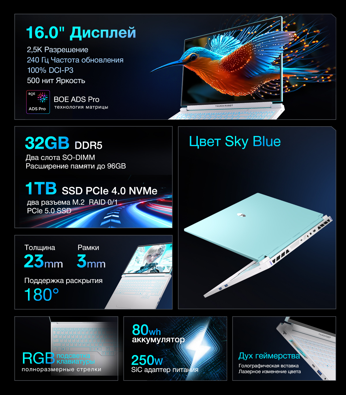 Характеристики Ноутбук Thunderobot RS16 (RS16-R9985HX57TE1Q240ARC)