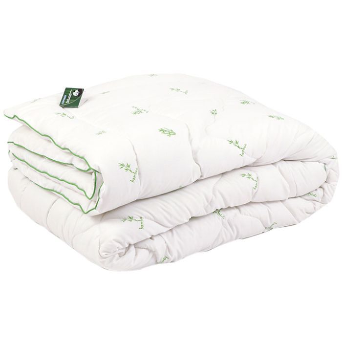 Наполнение одеяла – состоит на 50% из бамбукового волокна, а на 50% - полиэфирное волокно — это идеальное процентное соотношение материалов. Полиэфирное волокно добавляют, чтобы сделать одеяла пышными, мягкими и в то же время легкими, а учитывая тот факт, что полиэфирного волокна не больше 50%, на качественных характеристиках изделий это никак не сказывается. Одеяло из бамбукового волокна мало весит, обеспечивает оптимальную теплорегуляцию и хороший воздухообмен. Чтобы изделие сохраняло тепло необходимо правильно подобрать его размер в зависимости от параметров кровати, по ширине одеяло должно быть на 40-50 см больше матраса.
