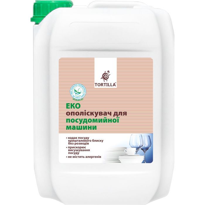 Эко ополаскиватель для посудомоечной машины "Тортилла" для удаления пятен и разводов на поверхности посуды, придания блеска и ускорения процесса высушивания.