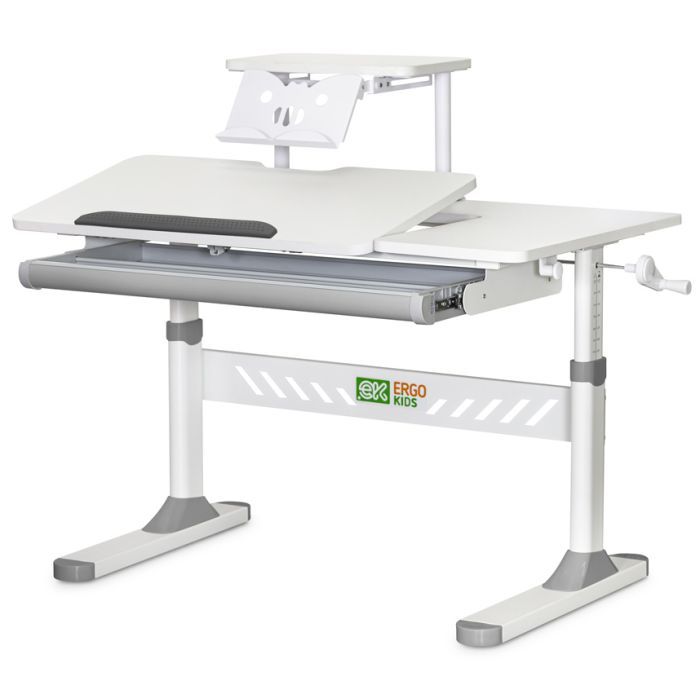Высота стола регулируется с помощью механической ручки, что позволяет легко устанавливать парту в соответствии с ростом ребенка.