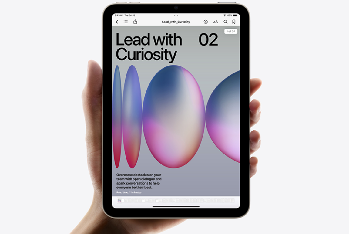 Передовой чип A17 Pro превращает твой iPad mini 7 в мощное устройство, способное легко решать любые задачи. 5-ядерный графический процессор на 25% быстрее обрабатывает графику, а 16-ядерная система Neural Engine работает до 2 раз быстрее. Ты сможешь без проблем работать в нескольких приложениях, играть в игры со сложной графикой, заниматься редактированием фото или создавать 3D-модели, и все это много часов подряд, ведь заряда батареи хватит на целый день.