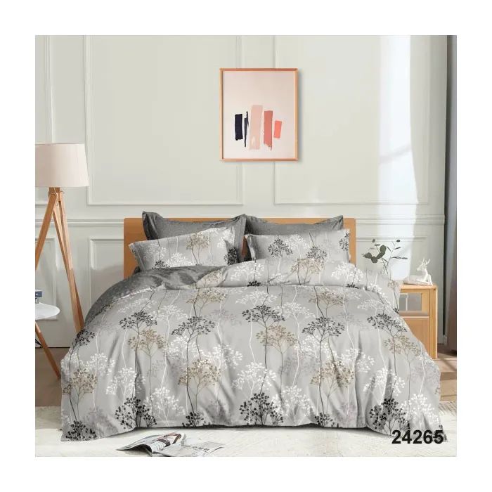 семейный, Простынь - 220 x 240 см, Пододеяльник - 143 х 210 см, Наволочка - 70 х 70 см, ранфорс, 2 шт., 2 шт., с цветочным принтом, фирменная упаковка, с вырезом внизу, серый