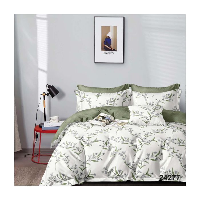 Комплектация включает простыню размером 220 x 240 см, две наволочки 70 x 70 см и два пододеяльника 143 х 210 см. Это гарантирует комфортный сон для всей семьи.
