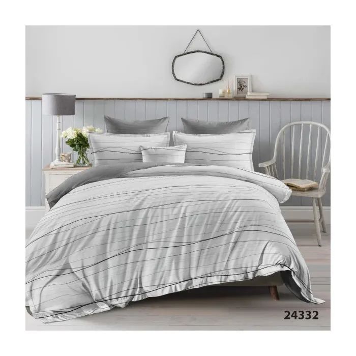 Комплект состоит из простыни размером 220 x 240 см, пододеяльника 200 x 220 см и двух наволочек 70 х 70 см. Размер комплекта - евро, что идеально подойдёт для больших кроватей. Viluta заботится о вашем комфорте в любое время года: ткань хорошо пропускает воздух, сохраняя тепло, и обладает гипоаллергенными свойствами, что подходит даже для чувствительной кожи.