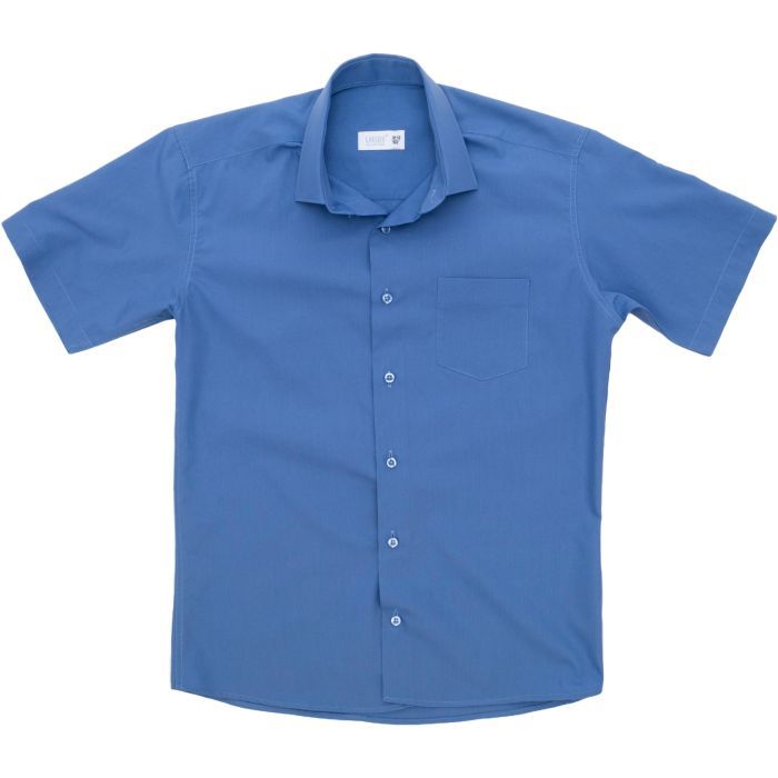 - Элегантная классическая рубашка с коротким рукавом, темно-голубого цвета из тонкой хлопковой ткани для мальчика.