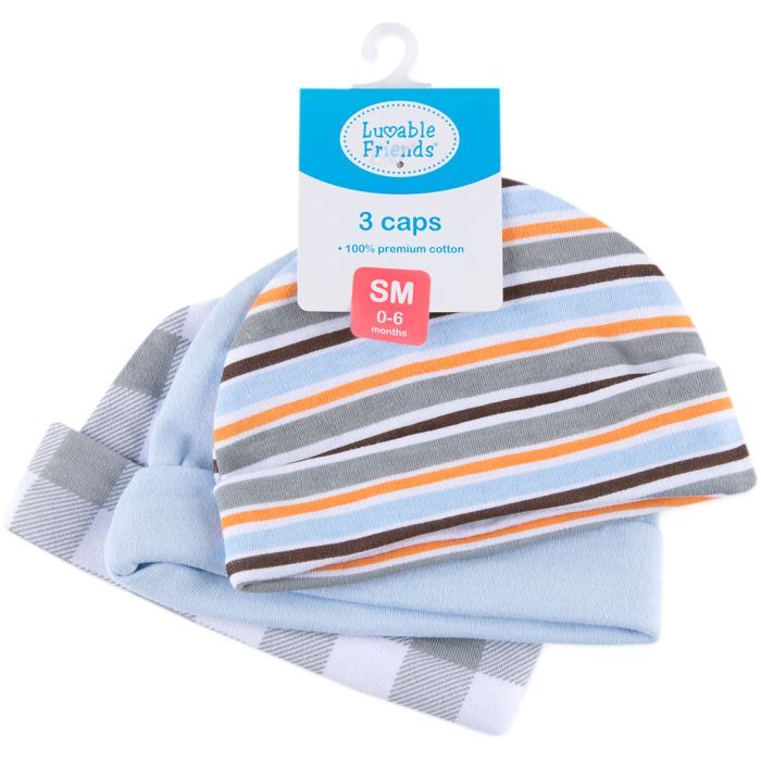 ТМ Luvable Friends предлагает три очаровательных шапочки в одном комплекте. Хлопковый трикотаж имеет достаточно эластичные свойства, чтобы удобно облегать головку малыша. А яркие и жизнерадостные расцветки создают отличное настроение окружающим и добавят шарма малышам.