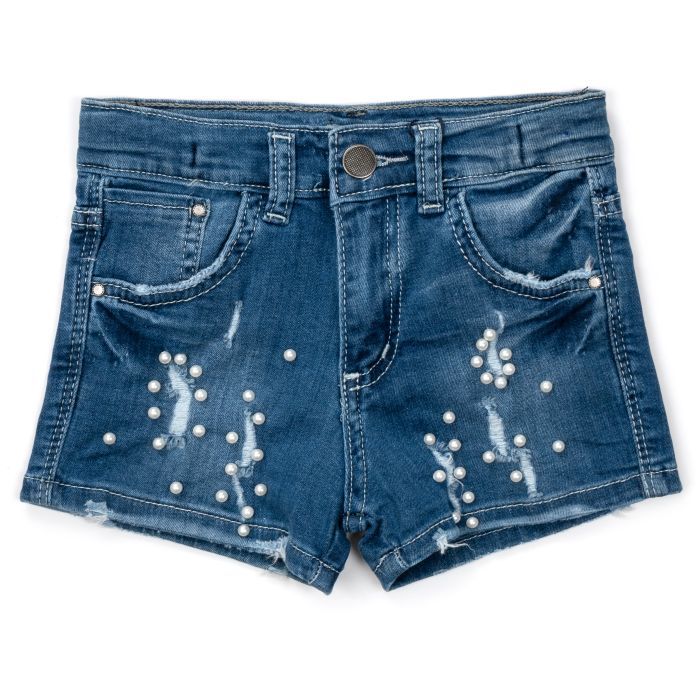 Модные стрейчевые джинсовые шорты с жемчужинами для девочки.