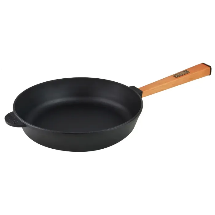 Эргономичная ручка из бакелита с soft-touch покрытием обеспечивает комфортное использование. Она надежно крепится с помощью винтов, что делает сковороду безопасной и устойчивой. Такая обработка ручки не только добавляет тактильного удовольствия, но и защищает руки от ожогов и не позволяет рукоятке выскальзывать из влажных ладоней.