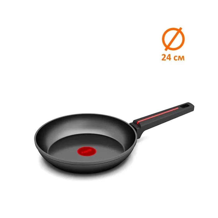 Эргономичная ручка из бакелита с покрытием soft-touch обеспечивает комфортное использование и безопасное удержание, снижая риск случайного выскальзывания из рук. Винтовое крепление ручки добавляет устойчивости и надежности конструкции, так что сковорода станет вашим надежным партнером в приготовлении пищи на долгие годы.