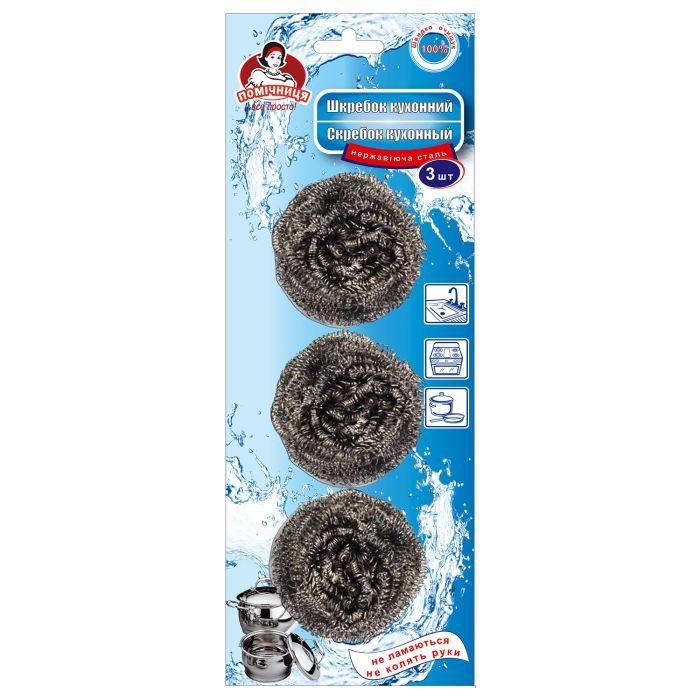 Кухонный скребок для посуды Помощница изготовлена из нержавеющей стали. Быстро и качественно очищает сильно загрязненные поверхности. Предназначен для кастрюль и сковород без тефлонового покрытия. Также использование скребка актуально в уходе за мойками, плитами и другими кухонными принадлежностями. Преимущества товара: